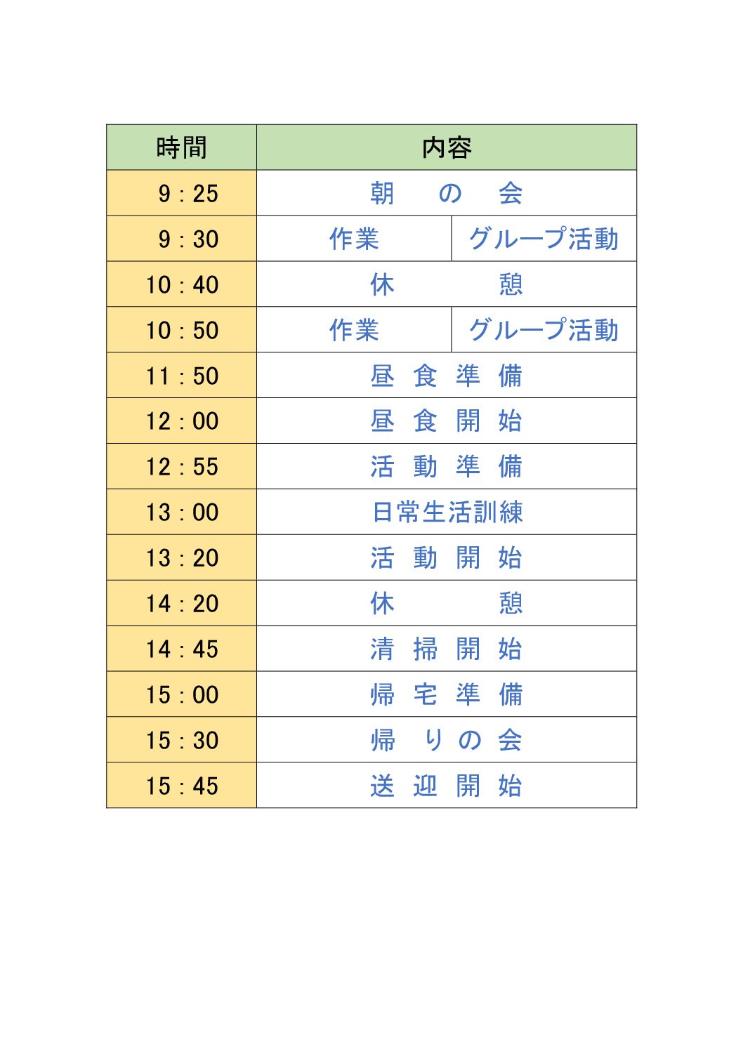 | 9月 | 夏祭り | ・日中活動の発表の場とします ・地域・関係機関の方々にPRをします ・祭りを盛り上げて交流の場とします |